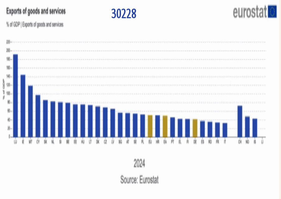 Wirtschaftlich ist Deutschland definitiv derzeit fußkrank. Mit nur -0,1 % für die in 2025 vom IWF erwartete BIP-Entwicklung nimmt Deutschland den vorletzten Platz ein (Abb. 30214).