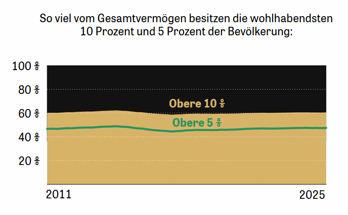 Inzwischen kontrolliert das reichste Prozent weltweit mehr Vermögen als die gesamte ärmere Hälfte der Bevölkerung. Das ist kein Randphänomen, sondern Ausdruck einer Dynamik, in der Vermögen immer schneller aus sich selbst heraus wächst - und große Teile der Gesellschaft kaum noch Chancen auf eigenen Kapitalaufbau haben. Auch in Deutschland zeigt sich dieses Muster in besonderer Schärfe. Seit vielen Jahren gehört die Bundesrepublik zu den Ländern mit der höchsten Vermögensungleichheit in Europa. Die reichsten zehn Prozent der Haushalte halten zwei Drittel des Nettovermögens; die untere Hälfte der Bevölkerung kommt zusammen gerade einmal auf ein Prozent. Besonders alarmierend: Nahezu dreißig Prozent der Haushalte besitzen keinerlei Vermögen - viele sind sogar überschuldet. Ihnen fehlen nicht nur finanzielle Rücklagen, sondern auch jede reale Chance auf eine stabile wirtschaftliche Perspektive.